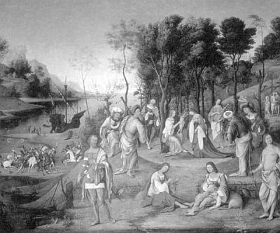 Первым век золотой народился, не знавший возмездий,Сам соблюдавший всегда, без законов, и правду и верность.Не было страха тогда, ни кар, и словес не читалиГрозных на бронзе; толпа не дрожала тогда, ожидаяВ страхе решенья судьи, — в безопасности жили без судей.И, под секирой упав, для странствий в чужие пределыС гор не спускалась своих сосна на текущие волны.Смертные, кроме родных, никаких побережий не знали.Не окружали еще отвесные рвы укреплений;Труб небывало прямых, ни медных рогов искривленных,Не было шлемов, мечей; упражнений военных не зная,Сладкий вкушали покой безопасно живущие люди.Также, от дани вольна, не тронута острой мотыгой,Плугом не ранена, все земля им сама приносила.Пищей довольны вполне, получаемой без принужденья,Рвали с деревьев плоды, земляничник нагорный сбирали,Терн, и на крепких ветвях висящие ягоды тута,Иль урожай желудей, что с деревьев Юпитера пали.Л. Коста. Царство муз. Холст (ок. 1500 г.).