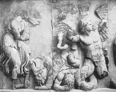 Гигантомахия. Фрагмент рельефа на Пергамском алтаре.