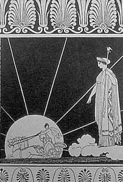 В божественном небе божественны и его обитатели, и прежде всего, конечно, его великие светила, Гелиос-солнце и Селена-луна. О природе Гелиоса общепринятых убеждений нет. Многие думают и поныне, что это — божественный юноша, разъезжающий на золотой колеснице по небесной «тверди», и что тот ослепительный свет, который мы видим — именно сияние ее кузова. Загадкой является, как это он, заходя на западе, поднимается с востока; раньше думали, что он ночью совершает переезд обратно на восток по кругосветной реке Океан, но теперь достаточно удостоверено, что он вместе с прочими светилами погружается под горизонт и во время нашей ночи освещает обитель блаженных на отвращенном от нас облике нашей земли. Для нас Гелиос прежде всего — бог очищающий; как его ярые лучи обезвреживают своей палящей силой всякий тлен, так и его дух разгоняет всякую скверну, всякое наваждение ночных страхов. Мы встречаем его приветствием и молитвой при восходе и рассказываем ему привидевшиеся нам тревожные сны, чтобы он очистил от них нашу душу.