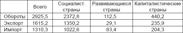 Источник: Внешняя торговля СССР. Юбилейный статистический сборник. — М.: Финансы и статистика, 1982.