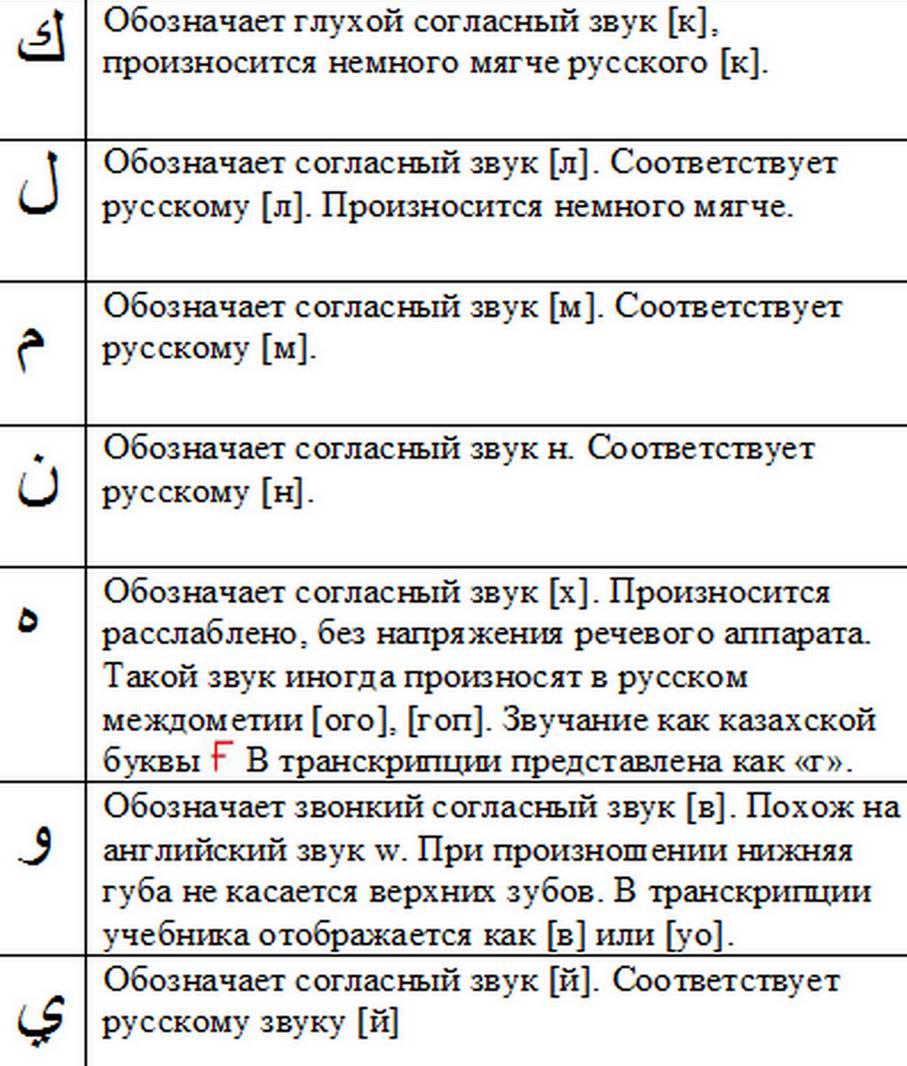 Звук «г» в транскрипции следует всегда произносить как казахский звук, подробнее см. в разделе «Фонетика»
