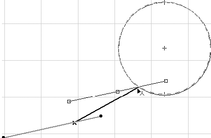 4. Щелкнуть кнопкой мыши на линии и переместить указатель мыши к окружности так, чтобы он принял форму
