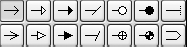 Если выбрана маркированная линия, то становятся доступными расположенные справа от этих кнопок поле для ввода размера маркера и кнопка выбора пера для его отрисовки. Это дает возможность отрисовки маркера, например, цветом, отличным от цвета линии. Вид маркера выбирается из группы переключателей (рис. 3.5), которая открывается нажатием кнопки Select Arrowhead (Выбор маркера)