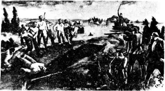Расстрел 10 курганских комиссаров 15 сентября 1918 года белочехами. С картины художников Г. Т. Козлова и И. П. Шмелева.