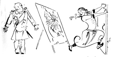 Старша глаза взвела на картину, с испугу в подпечек полезла. Папа ей кочергой добывал и ухватом — все напрасно. Друга дочка сперва тоже заревела, дале сграбилась за раму да с размаху родителю на голову и надела....