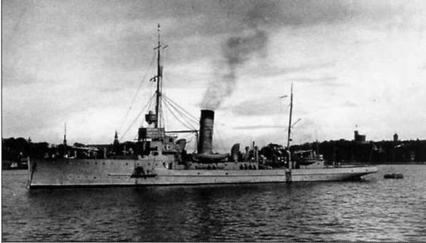 Сторожевой корабль "Вирсайтис". Финны полагали, что корабль получил попадание 305-мм снаряда с Мякилуото в 00:30 3.12.1941 г. и затонул. На самом деле корабль погиб позднее, подорвавшись на мине