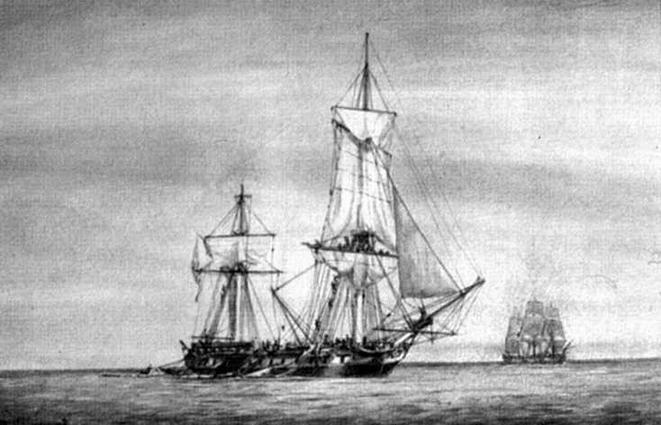 Взятие французского приватира «Сэндвич» морскими пехотинцами с фрегата «Конститьюшн». Сан-Доминго, 11 мая 1800