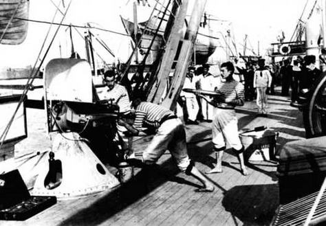 Занятия комендоров у 20-фукнтовой пушки «Патагонии»