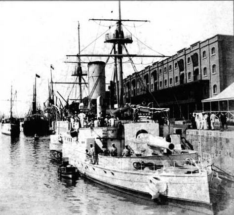 «Патагония» в Пуэрто-Мадеро, 1890-е гг. Хорошо видно носовое 254-мм орудие (Archive General de la Nacion)