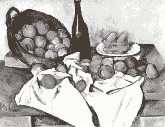 В качестве примера рассмотрим натюрморты П. Сезанна и П. Пикассо. Устойчивость структуры художественного образа, его выразительность в натюрморте Сезанна возникает благодаря уравновешенности, соотнесенности элементов композиции в вертикальной и горизонтальной плоскости. Сезанн достигает художественного порядка посредством гармонизации векторов «сил». Его работа выглядит законченной и целостной.