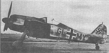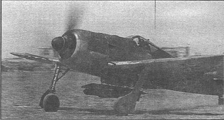 Еще 13 января 1943 г. два FW190A- 3 из состава JG54 были атакованы парой советских истребителей Як-7 над Ладожским озером. Ведущий был сбит сразу, а ведомый, унтер-офицер Хель- мут Брандт, получив попадание из собственной пушки в лопасть винта из-за неисправности синхронизатора, совершил вынужденную посадку с выпущенным шасси на лед у берега, занятого советскими войсками. Сам Брандт плена избежал, а его самолет был захвачен практически неповрежденным. А 21 февраля под Демьянском сел на брюхо и был захвачен в относительно исправном состоянии самолет той же модификации, пилотировавшийся майором Гансом "Асси" Ханом. Летчик попал в плен.