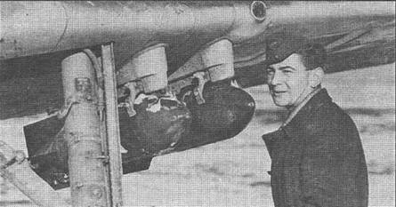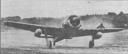 На рулежке – истребитель-бомбардировщик Fw 190G-1. Он вооружался только двумя 20-мм пушками MG 151, но мог нести два 300-л дополнительных бака и 250-кг бомбу при дальности полета в 1500 км. Выпущено 50 шт.