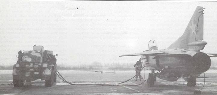 Техник убирает стремянку. Дальше мы держим с ним связь по шнурку самолетного переговорного устройства (СПУ), подсоединенному к разьему под носом фюзеляжа. Контроль со стороны обязателен, ведь если что- то и происходит, то почти всегда при запуске, когда опробуется двигатель, а в системы подается питание и давление (даже обычная лампочка перегорает чаще всего как раз при включении). Давление воздуха, азота, и в гидросистеме – в норме, связь работает, АРК и РСБН тоже. В "память" ПрНК-23 введена программа маршрута с шестью поворотными пунктами (в полете на боевое применение они могли бы служить и целями) и координаты четырех аэродромов посадки – своего и трех запасных, Талды-Кургана, Семипалатинска и Уч- Арала, куда система автоматически выведет из любой точки полета по кратчайшему пути.