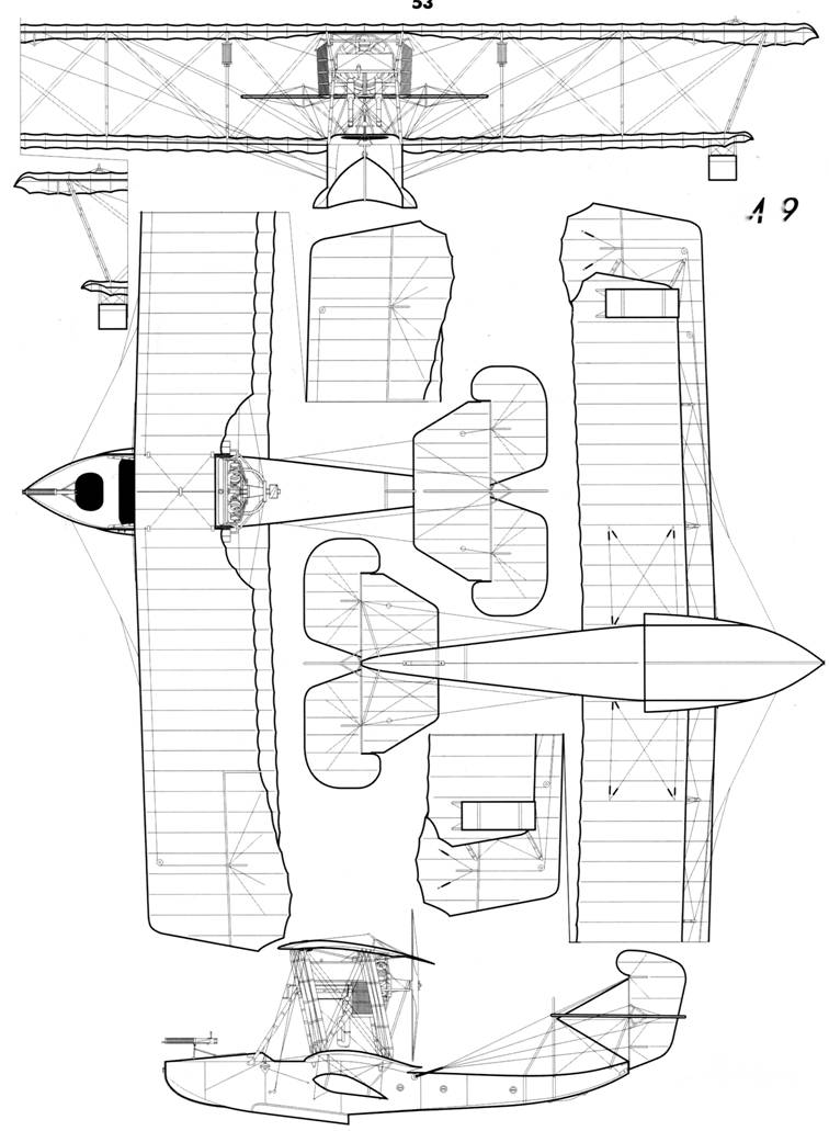 Двигатель «Сальмсон» на М-9 оснащен коробчатыми радиаторами охлаждения. Почти в центре нижнего крыла заметен манометр топливного бака, развернутый своим «лицом» к левому пилоту