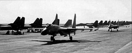 Как бы то ни было, но к сентябрю 2012 г. в летных испытаниях участвовало, по данным СМИ, уже шесть самолетов типа J-15, получившего имя «Летающая акула». Наземная отработка взлета истребителя с палубы осуществляется в Центре CFTE (China Flight Test Establishment), расположенном на авиабазе Yan Liang недалеко от г. Сиань (Xian). На территории Центра сооружена взлетная рампа, по размерам и конфигурации аналогичная рампе, примененной на ТАВКР «Варяг». Сообщалось, что первая серия самолетов J-15 составит 16 единиц.
