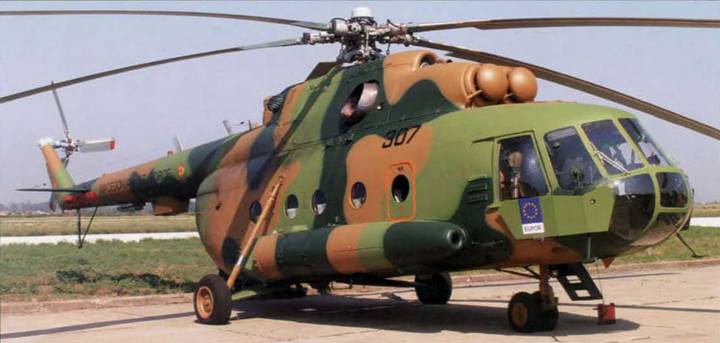 Вертолеты Ми-24 (вверху), UH-1H (в центре) и Ми-8/17 составляют основу военной авиации Македонии. На нижнем фото Ми-8МТ (зав. № 94018) – один из двух вертолетов, прошедших в 2006 г. капитальный ремонт и модернизацию в Украине на Конотопском авиаремонтном заводе «АВИАКОН»