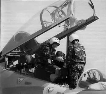 Затем после медосмотра и предполетного курса подготовки Ющенко поднялся в воздух на Су-27УБ (борт «74») вместе с заместителем командующего Воздушными силами Украины по авиации генерал-майором Василием Никифоровым. Полет Главы государства продолжался 35 мин.