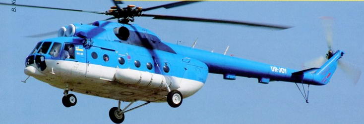 Не обошлась без участия гражданских Ми-8 и ликвидация последствий катастрофы на Чернобыльской АЭС (о работе авиации см. «АиВ», №№ 2-5’2011). В зоне бедствия работали вертолетчики из Симферополя, Новосибирска, Печоры, Ухты, Архангельска, Свердловска и Мячково. Ми-8 использовались на различного рода строительно-монтажных работах, для полива местности с помощью жидких пылеподавляющих растворов, предупреждения и тушения пожаров на загрязненной радиоактивными осадками местности и т.п. Например, с вертолетов, оснащенных выносными сливными устройствами, осуществлялся облив водой лесных массивов и отдельных населенных пунктов для предупреждения пожаров. Только до 1 июля 1986 г. экипажи 7 аэрофлотовских Ми-8 налетали 1153 ч, перевезли 1600 т жидкостей, обнаружили 40 пожаров и выполнили 252 спуска пожарных.