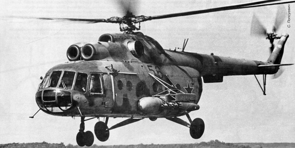 Ми-8 весьма быстро приобрел популярность как в СССР, так и за его пределами. Однако, когда машина стала эксплуатироваться в регионах с жарким климатом и на высокогорье, со всей очевидностью проявилась ее недостаточная энерговооруженность для таких условий. Все понимали, что необходим более мощный двигатель. Его проектирование коллектив Изотова начал еще в 1965 г., а через два года вышло постановление Совмина СССР о создании и модернизированного вертолета. Однако по ряду причин только в 1970-е годы началась непосредственная реализация идеи по пересадке «восьмерке» нового «сердца». К тому времени новый двигатель ТВЗ- 117 не только прошел испытания, но и устанавливался на серийные вертолеты-амфибии Ми-14 и боевые Ми-24 (см. «АиВ», 6’2003 и 3’96). Его массовый выпуск был налажен на Запорожском ПО «Моторостроитель» (ныне АО «Мотор Сич»).