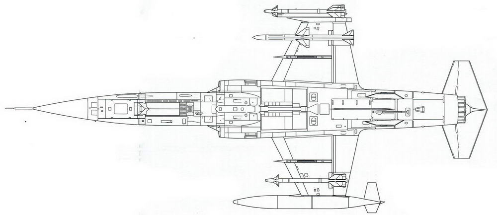 Итальянский F-104S с ракетами AIM-9L и AIM-7F (вид снизу)