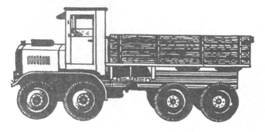 Советские грузовые автомобили, выпускавшиеся в годы войны, - это в основном те же полуторки и трехтонки, что и в 30-е годы. Но в их конструкцию были внесены суровые поправки военного времени: упрощенные, сваренные из кровельного железа Г-образные крылья, деревянные кабины, сведенное до минимума электрооборудование, тормоза только на задние колеса. В ряде случаев применялись газогенераторные автомобили, работающие на дровах. У таких машин в специальном устройстве - газогенераторе - из древесных чурок вырабатывался гооючий газ, который поступал затем в цилиндры двигателя.
