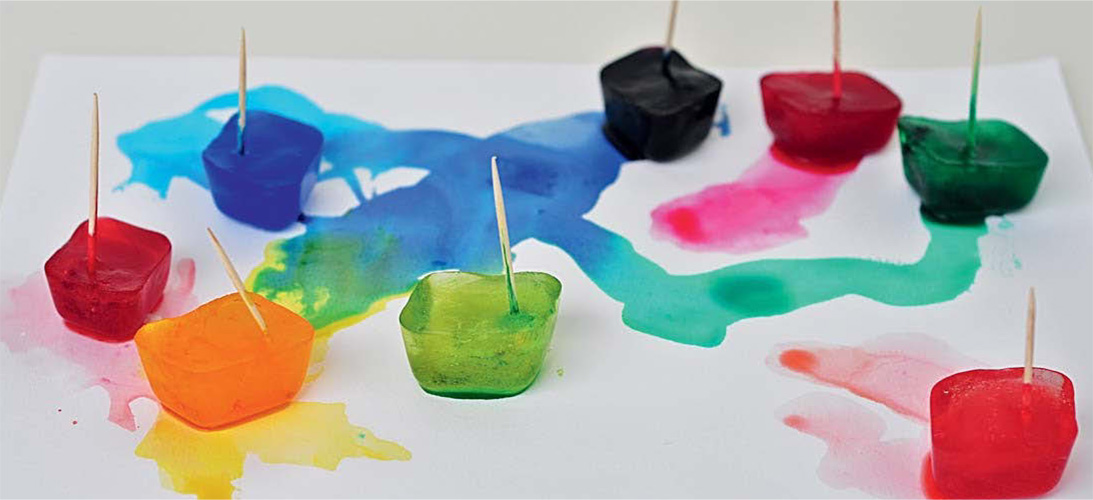 Маленьким детям, которые уже не тянут все подряд в рот, можно предложить порисовать ледяными разноцветными кубиками, особенно в летнюю жару.