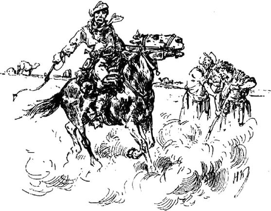 Покрытая пылью одежда неизвестного, равно как и вспотевшие бока его лошади красноречиво говорили о долгом пути, который был им совершен, прежде чем он достиг лагеря.