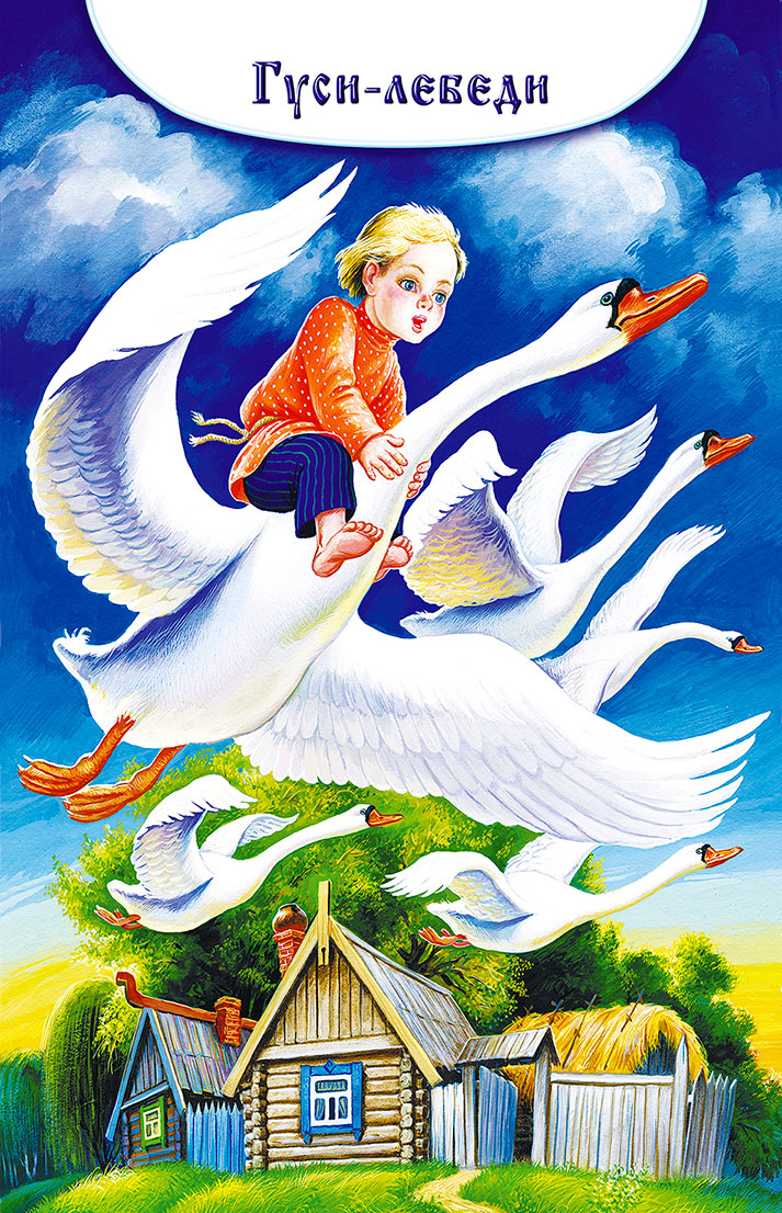 Налетели гуси-лебеди, подхватили мальчика, унесли на крыльях.