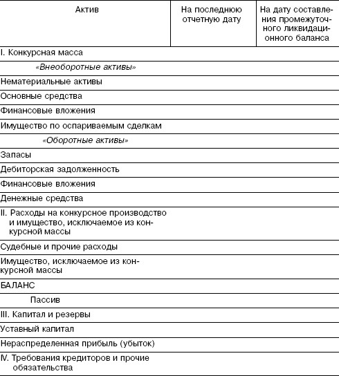 Процесс формирования актива (конкурсной массы) промежуточного ликвидационного баланса и последующий ее анализ, направленный на выявление имущества, способного дать реальные денежные средства для покрытия долгов предприятия-должника, проходят в несколько этапов.