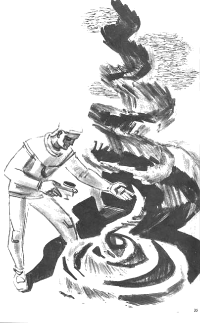 Лес, окружавший поляну, молчал. Шевцов с неприязнью смотрел на деревья. Небо, облака — это походило на Землю, но деревья были чужие Стволы их закручивались суживающейся кверху спиралью. Листва — довольно густая — имела неопределенную окраску — не то зеленую, не то синюю, не то черную. От корабля до ближайших деревьев было метров полтораста, не больше. Но Шевцов не хотел идти туда. Там начиналось неведомое. А Шевцов устал. Было хорошо сидеть в тени корабля, дышать теплым, пахучим воздухом, смотреть на белые облака и ни о чем не думать.