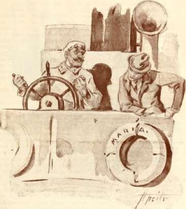 Стучала машина, за бортомъ йурлплп и пенились волны, подиимавш1Яся поро ходо»гъ. Вечерело. Блескъ солнца стано вплся краснее и мягче. Отражаясь отъ колеблющейся поверхности волнъ, оиъ врывался сквозь пллюминато|1Ы как1ты и нгралъ веселыми зайчиками на полированной цанелп степь. ;!айчнки таицо вали по всей кают*, отъ ихъ б*гающихъ яркихъ бликовъ становилось больно глазам*.