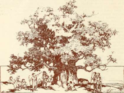 Посреди священной рощи, па широкой равнин'Ь, оданоко красовался высокш дубъ Союза. Верхушка его была в'Ьщомь среди верхушекъ всей рощи. Двенадцать сильпыхъ мужей не могли обнять ствола этого дуба. Широко вокр1,ть простирались его пышныя в*тви. Подь этими ветвями расположился прибывш1й на собран1е Ванемъ Имапта. Вокругъ пего столпились лутш1е мужи его народа, а. передъ нимъ стоялъ пришелецъ. ста-]1икъ, съ юными и смЬтыми глазами. Иманта поглядЬлъ на старика, съ минуту его взоръ выражалъ недоум'Ьн1е. Нако-нецъ. онъ пре11валъ свое молчан1е: