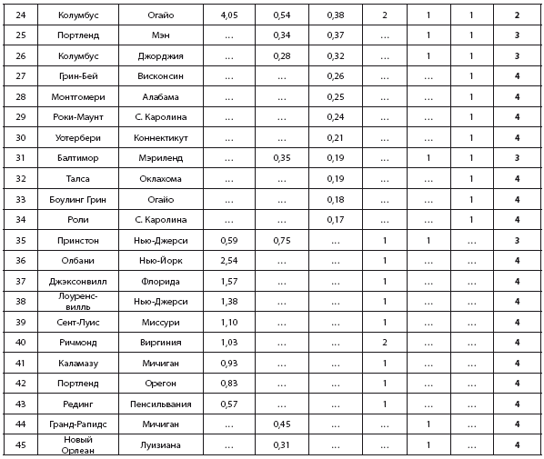 Таблица 2. Ведущие банковские центры США в 1994–2005 гг.