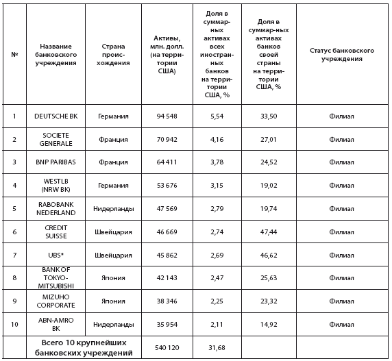 Таблица 3. 10 крупнейших иностранных банковских учреждений в США, 2005 г.