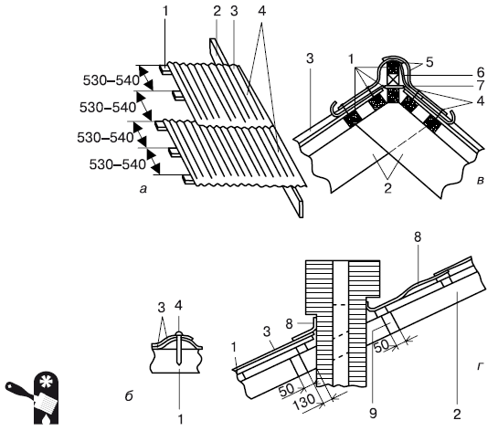 Монтаж ондулина (рис. 4.8) принципиально не отличается от монтажа обычного шифера.