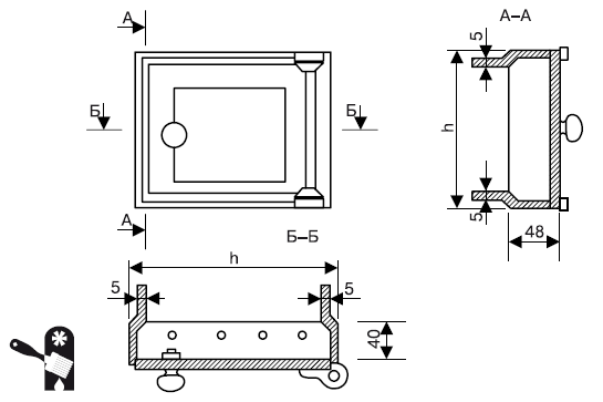 Чистки-коробочки более практичны, чем дверки. Их можно изготовить из кровельной стали таким же размером, как и прочистные дверки простой конструкции. Они состоят из рамки, в которую входит коробочка с ручкой. Их легко изготовить самостоятельно. Внутреннюю часть коробочки заполняют куском кирпича на глиняном растворе. Его толщина должна быть равна толщине стенки печи или дымохода. Можно обойтись одной коробочкой без рамки, вставляя ее в отверстие кладки и обмазывая глиняным раствором.