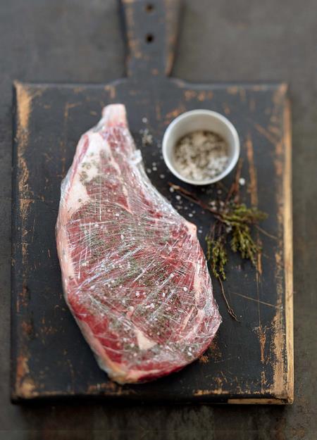 Почистите и нарежьте 100 г лука-шалота. Положите в сотейник, добавьте 300 мл красного вина и 1 веточку свежего тимьяна; уваривайте, пока жидкость не выпарится наполовину. Влейте 200 мл говяжьего бульона, посолите и поперчите. Продолжайте варить еще 15 минут на среднем огне, пока соус не загустеет. В конце приготовления добавьте 20 г сливочного масла и хорошо взбейте.