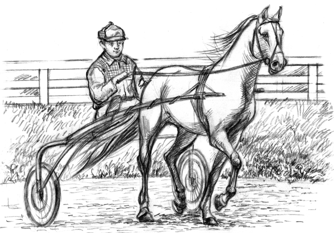 Он шел ровной машистой рысью, почти не колеблясь спиной, с вытянутой вперед и слегка привороченной к левой оглобле шеей, с прямо поднятой мордой. Благодаря редкому, хотя необыкновенно длинному шагу его бег издали не производил впечатления быстроты; казалось, что рысак меряет, не торопясь, дорогу прямыми, как циркуль, передними ногами, чуть притрогиваясь концами копыт к земле. Это была настоящая американская выездка, в которой все сводится к тому, чтобы облегчить лошади дыхание и уменьшить сопротивление воздуха до последней степени, где устранены все ненужные для бега движения, непроизводительно расходующие силу, и где внешняя красота форм приносится в жертву легкости, сухости, долгому дыханию и энергии