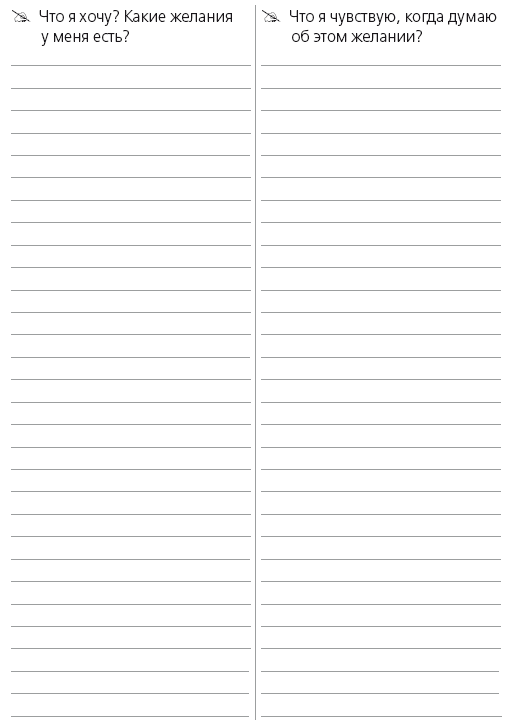 Не надо ничего менять. Просто записывайте желания, которые придумаете. Через несколько дней вы сможете посмотреть, какие из них действуют по кругу, какие мучают, а какие радуют вас. А еще через некоторое время сумеете отвести рукой водоросли, заходя в чистую, прозрачную воду ваших личных, истинных желаний.