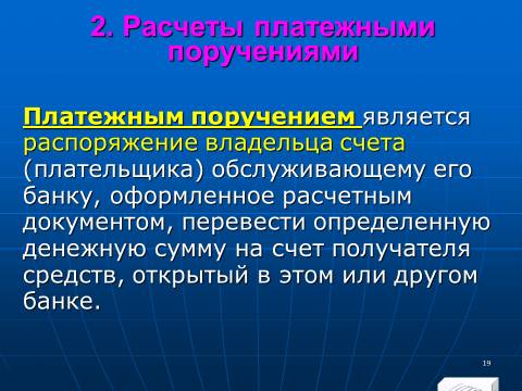 1. денежные расчеты путем перевода денежных средств со счета плательщика на счет получателя