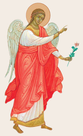 И вот однажды, когда Мария читала Священное Писание, вся Её бедная комнатка озарилась каким-то необыкновенным светом, как будто в ней явилось само солнце. Мария взглянула: перед Ней в воздухе, с цветами в руках, стоял Божий Ангел.