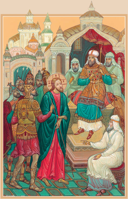 Все здесь старались обидеть терпеливого Господа, все старались найти какое-нибудь преступление за Ним, но ничего дурного не могли найти. Долго водили Его к разным судьям и архиереям, долго издевались над Ним.