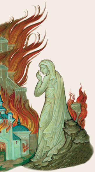 Но даже и десяти добродетельных людей не оказалось в двух городах. Тогда два Ангела Божии вывели из этих городов Лота с семейством и велели им скорее уходить и не оглядываться назад. Однако жена Лота не послушалась. Она оглянулась и вдруг за непослушание и любопытство тотчас превратилась в каменный столб. На города Содом и Гоморру упал с неба огонь, и оба города сгорели со всеми грешниками.