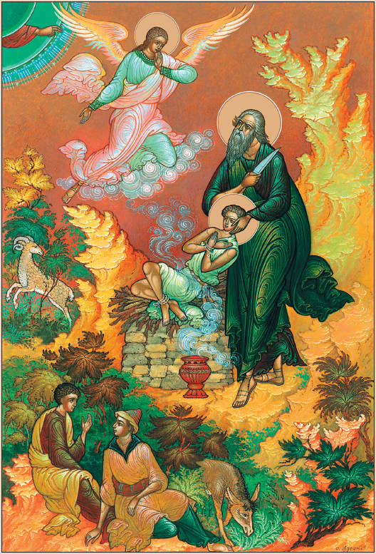 Пришли они на гору, Авраам сложил жертвенник, положил на него дрова, связал Исаака и уже поднял нож, чтобы принести его в жертву, как повелел Бог. Однако Господь вовсе не хотел лишить Авраама любимого сына; Он хотел только испытать, кого любит больше Авраам: сына своего или Господа Бога.