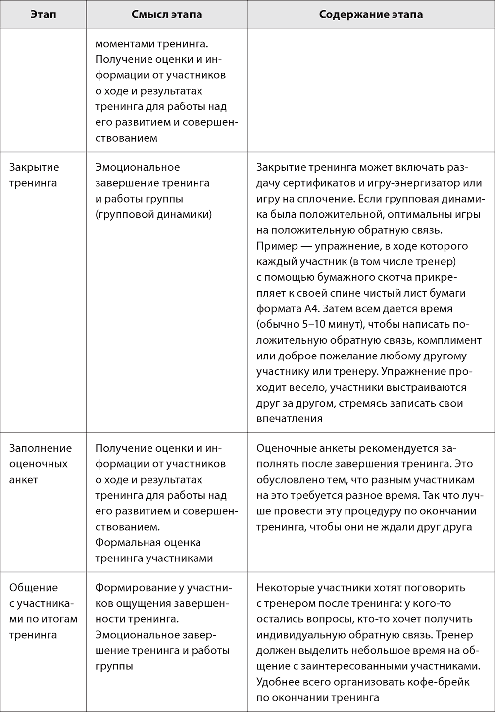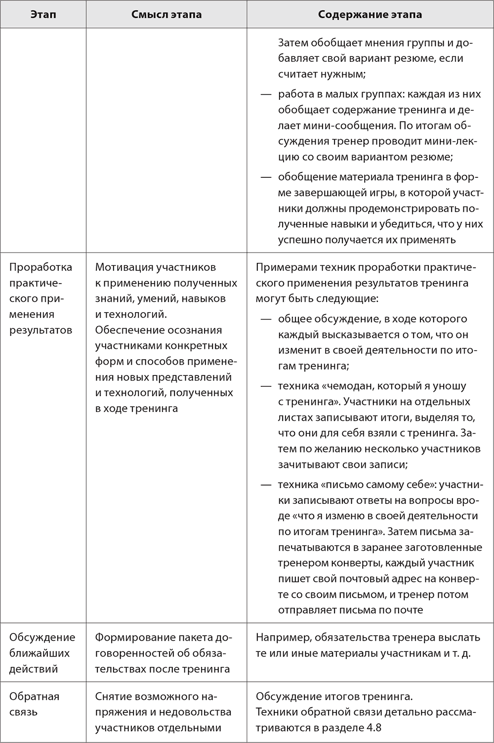 2.4.3. Задачи и содержание завершающего блока тренинга