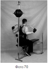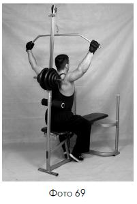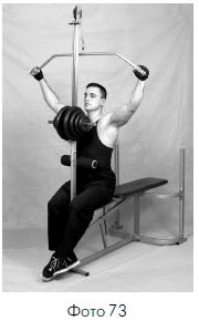 Система та же. Веса на блочном устройстве те же (или минус 5 кг). В случае если не получается подтянуться хотя бы раз 5–6, работайте с блочным устройством по принципу 1 разминочный подход, 2 рабочих. Для изначально продвинутых – та же система расширения хвата, что и в предыдущем упражнении.