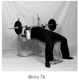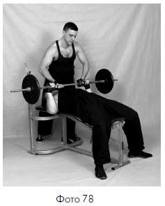 И еще. В жимах лежа я настоятельно рекомендую воспользоваться помощью партнера. Скажу откровенно: неприятное это дело – скатывать по себе штангу весом так килограммов под 100, которую ты в конце упражнения не смог положить на стойки, выложившись до отказа.