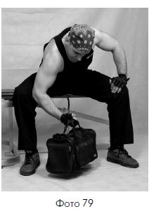 в) подъема вашего кейса или тяжелой сумки на бицепс сидя с бедра. 1 подход разминочный, 1 рабочий до отказа (фото 79–80);