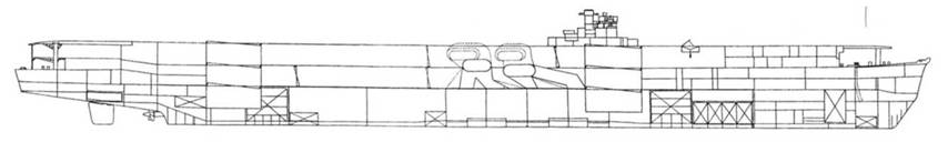 "СИНАНО" (провинция в центральной части острова Хонсю, префектура Нагато. Это же название носит главная река Японии, протяженностью 342 мили, на берегах которой родился Ямамото). Самый крупный в мире AB за период 2-й MB. Его стандартное водоизмещение было превзойдено только в 1960 г. при постройке американского атомного AB "ENTERPRISE". В 12.1941 г., в связи с началом войны, постройку корабля приостановили при 50% готовности корпуса и механизмов. После поражения в сражении у атолла Мидуэй было решено достроить "СИНАНО" как АВ. Его первоначально планировали ввести в строй в качестве вспомогательного корабля, предназначавшегося для обслуживания ударных авианосных групп и базовой авиации флота. В 7.1942 г. "СИНАНО" переклассифицировали в AB поддержки с функциями корабля снабжения AB 1 -й линии резервными самолетами, авиационным топливом и боезапасом Кроме того, он мог использоваться для ремонта поврежденных самолетов и решения задач ПВО корабельных соединений силами собственной авиагруппы. Окончательный проект переоборудования был готов в 9.1942 г. и тогда же начались соответствующие работы. После выхода корабля из дока обсуждался вопрос об его использовании для запуска управляемых реактивных снарядов (типа "Ока") с помощью специальных стартовых агрегатов. После успешного завершения ходовых испытаний (11.11.1942 г.) было решено перевести AB в Куре для завершения достройки и проведения курса боевой подготовки. На корабле еще не установили трюмные помпы, насосы для откачки воды, а водонепроницаемые переборки не были герметичны. Экипаж, набранный с различных кораблей и судов, не знал его конструкции. Однако, из-за угрозы атак американской палубной авиации, 28.11.1944 г. "СИНАНО" вышел из Йокосуки под эскортом ЭМ "XAМАКАДЗЕ", "ЮКИКАДЗЕ" и "ИСОКАДЗЕ". У входа в Токийский залив AB обнаружила американская ПЛ "ARCERFISH", которая спустя 8 часов (в 3-00 29.11.1944 г.) во внутреннем Японском море вышла в торпедную атаку. Из 6 выпущенных торпед в "СИНАHO" попало 4. Сразу после их взрыва корабль получил крен в 9-10 ° на правый борт. Из-за фильтрации водонепроницаемых переборок и отсутствия водоотливных средств, он постепенно заполнялся водой и через 8 часов после атаки перевернулся и затонул. Из 2515 человек, находившихся на борту в момент гибели (в т.ч. и строительные рабочие), эсминцы эскорта подняли из воды 1080. Командование "СИНАНО" добровольно отказалось покинуть тонущий корабль.