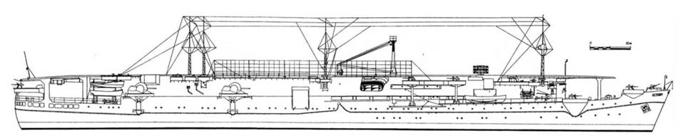 | "КАЙЁ"("KAIYO") | о/в. ф. "Мицубиси" Нагасаки | 1942 г. ?1943 г. | 164,2; 159,6 (WL) х 21,9 х 8,04 м (160x23,9) | 14100 т 16800 т |